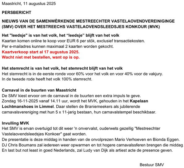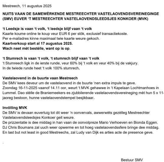 Vaanaof noe kint Mestreech weer in de pen klimme um e nuij Vastelaovendsleedsje te sjrieve veur 2026.